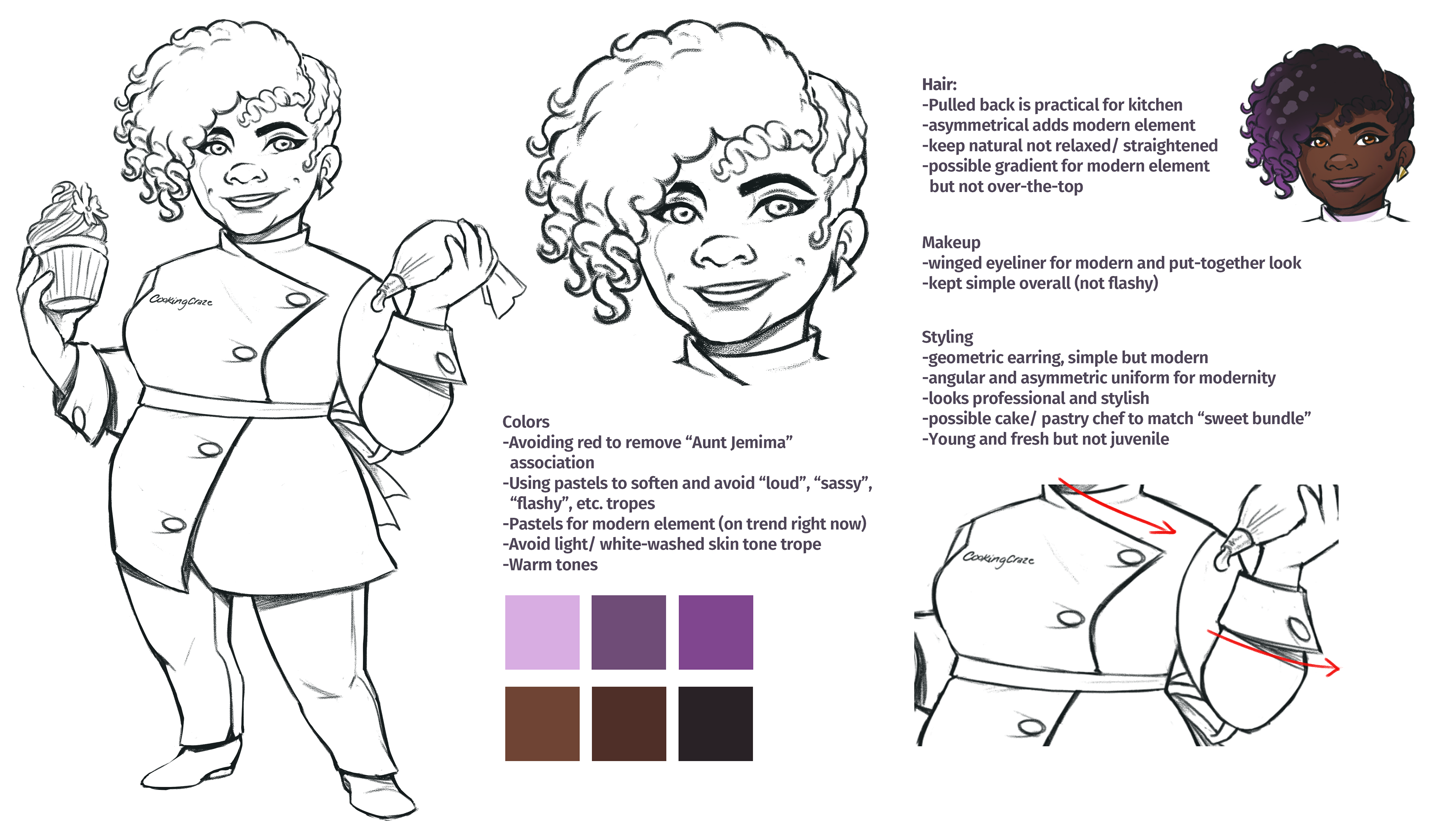 With the success of my previous characters, I was asked to design a new character to address a concern a player had with a lack of representation of modern black women. I was excited to have the opportunity to design a new character and address the issue. I worked closely with the Product Manager of Cooking Craze as well as marketing leads to create Chef Giselle as the newest addition to the Cooking Craze chefs.