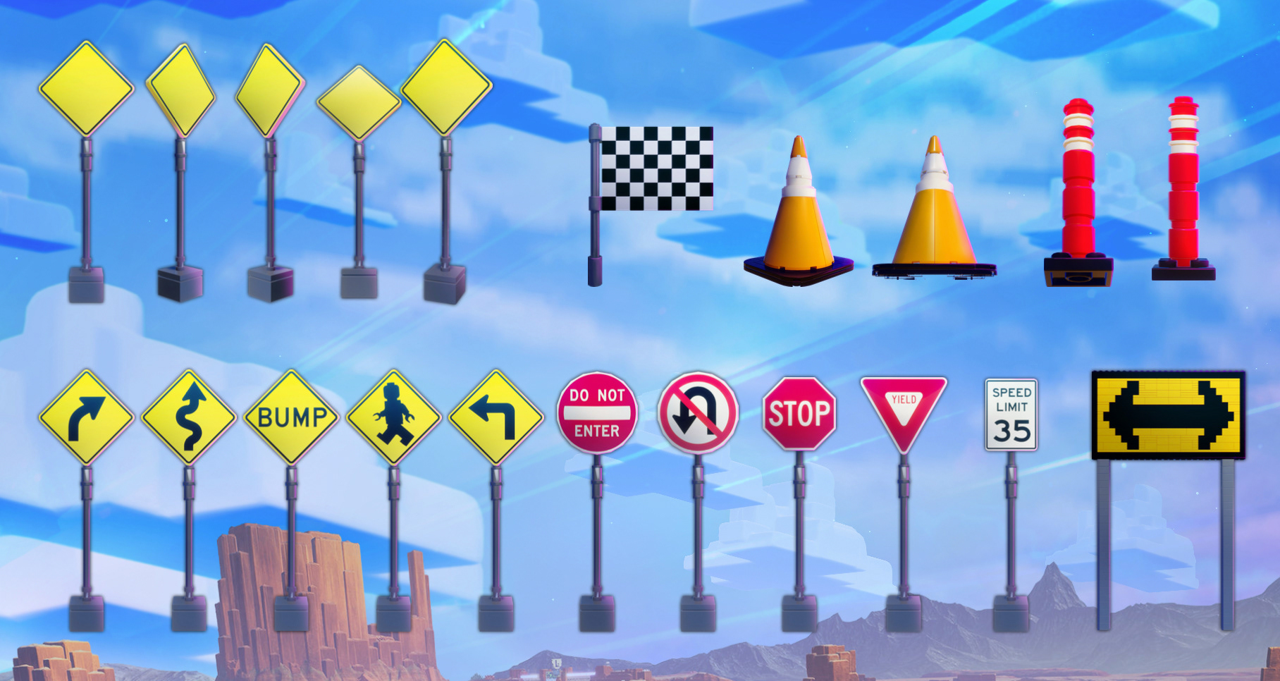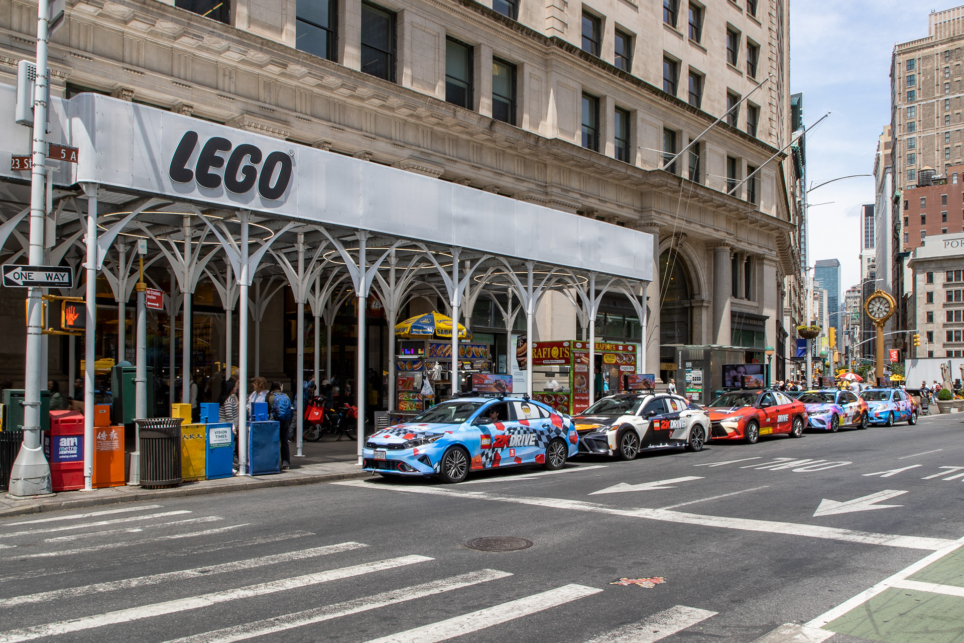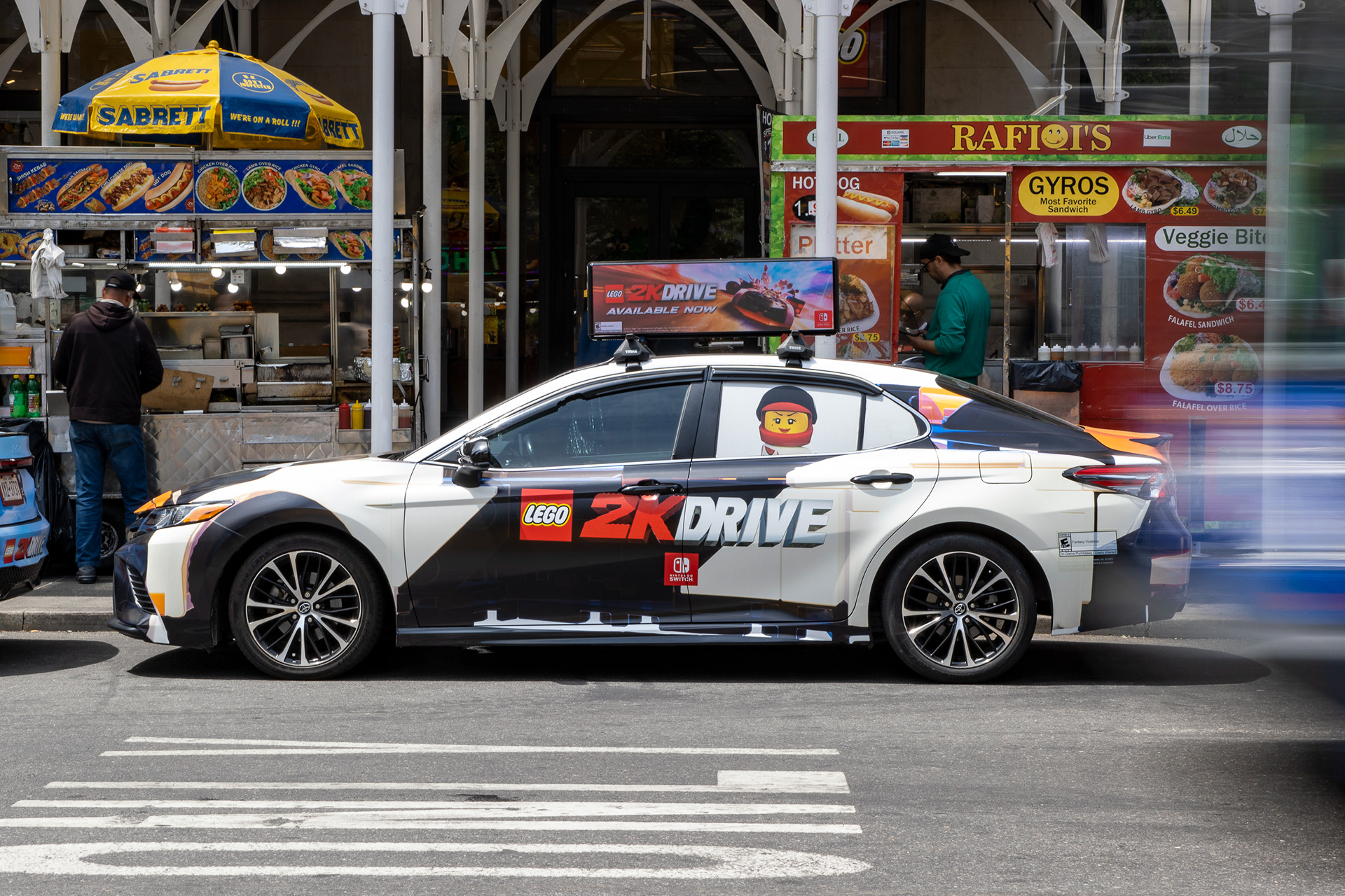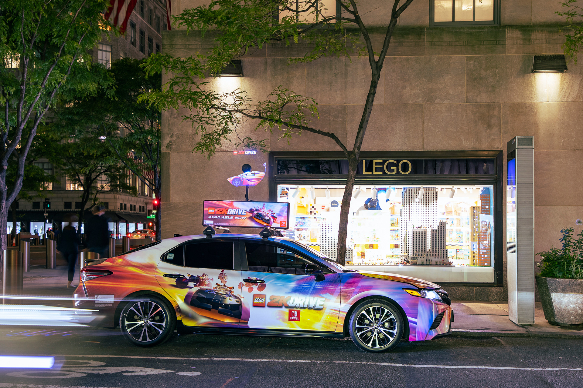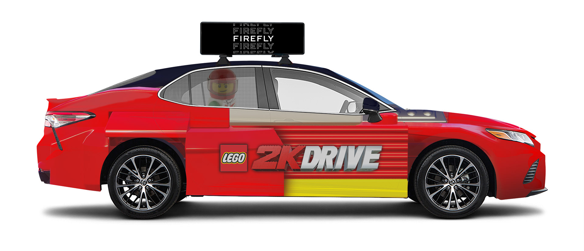 I worked closely with the Firefly Vehicle Advertisement company to create fun and eye-catching designs that would work on their vehicles and advertise the LEGO 2K Drive brand. I used a combination of illustration, 3D assets, and elements from our key art and in-game models to create 5 printed vehicle wraps. Two of the designs were composited and resized/ painted over versions of two of the in-game cars.