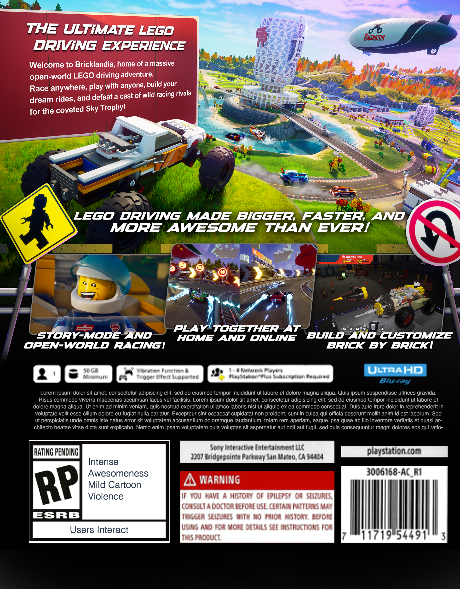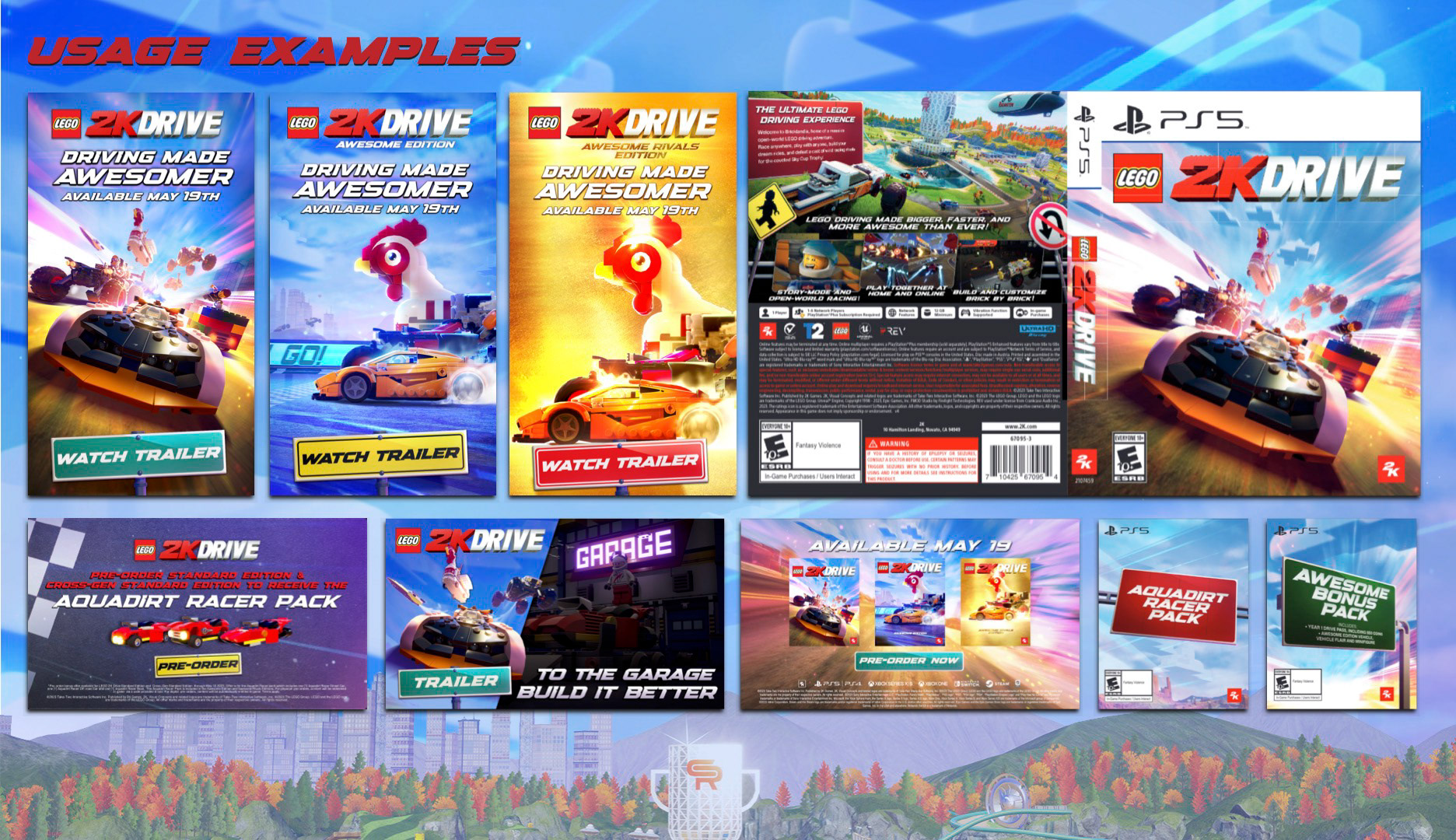 I also designed the back of box artwork for LEGO 2K Drive, which was used on all editions of the game for all platforms. I composited game capture images and added paintover, used in conjunction with my toolkit elements.