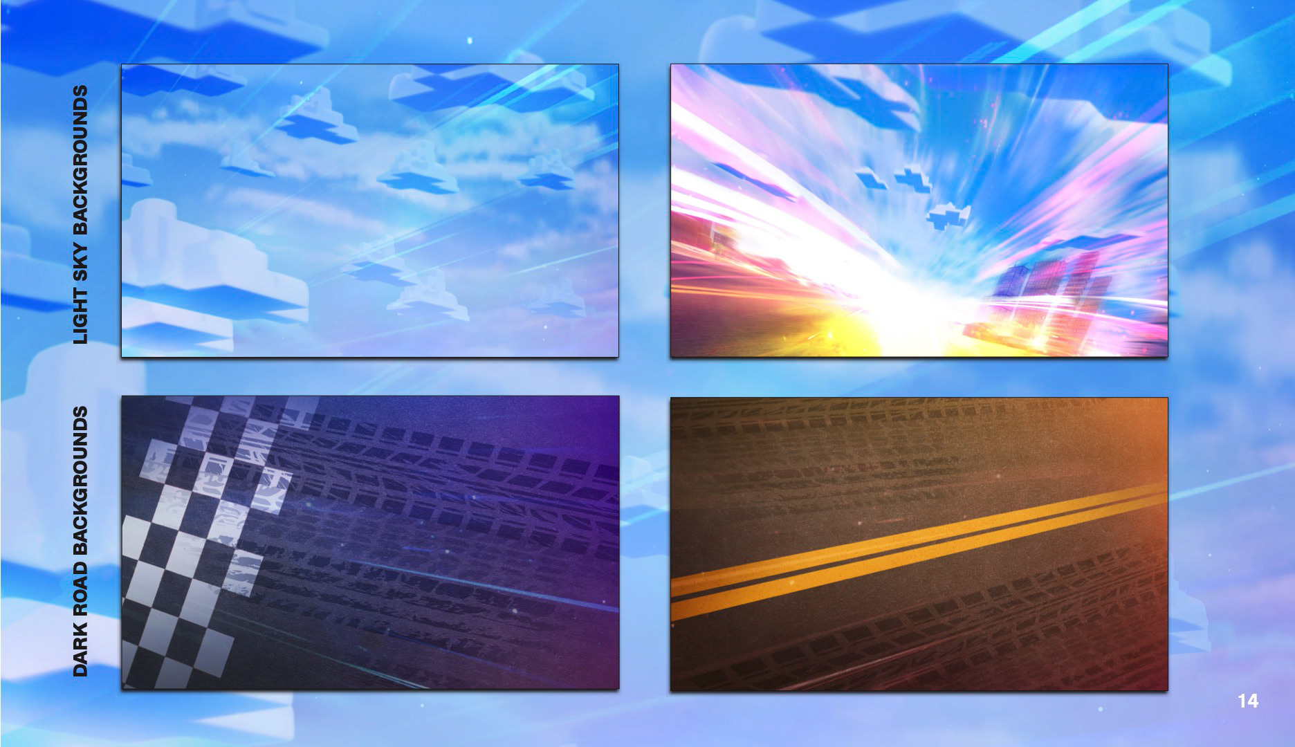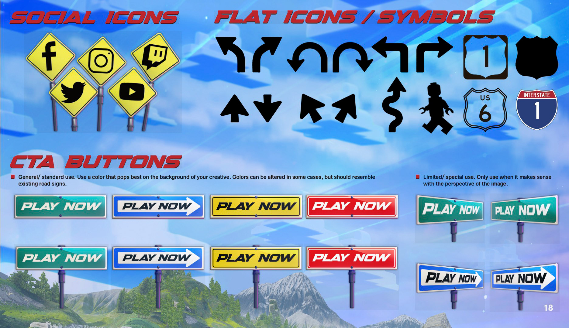 I created various backgrounds, road motifs, and road signs for use as buttons, text boxes and other design elements.