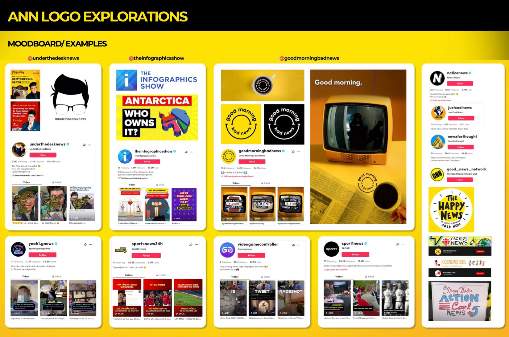 I was also tasked with coming up with branding for a social media marketing campaign on Tiktok and Instagram known as The Awesome News Network. I designed the logo for the network, which was later animated into an intro and used in the social media videos.