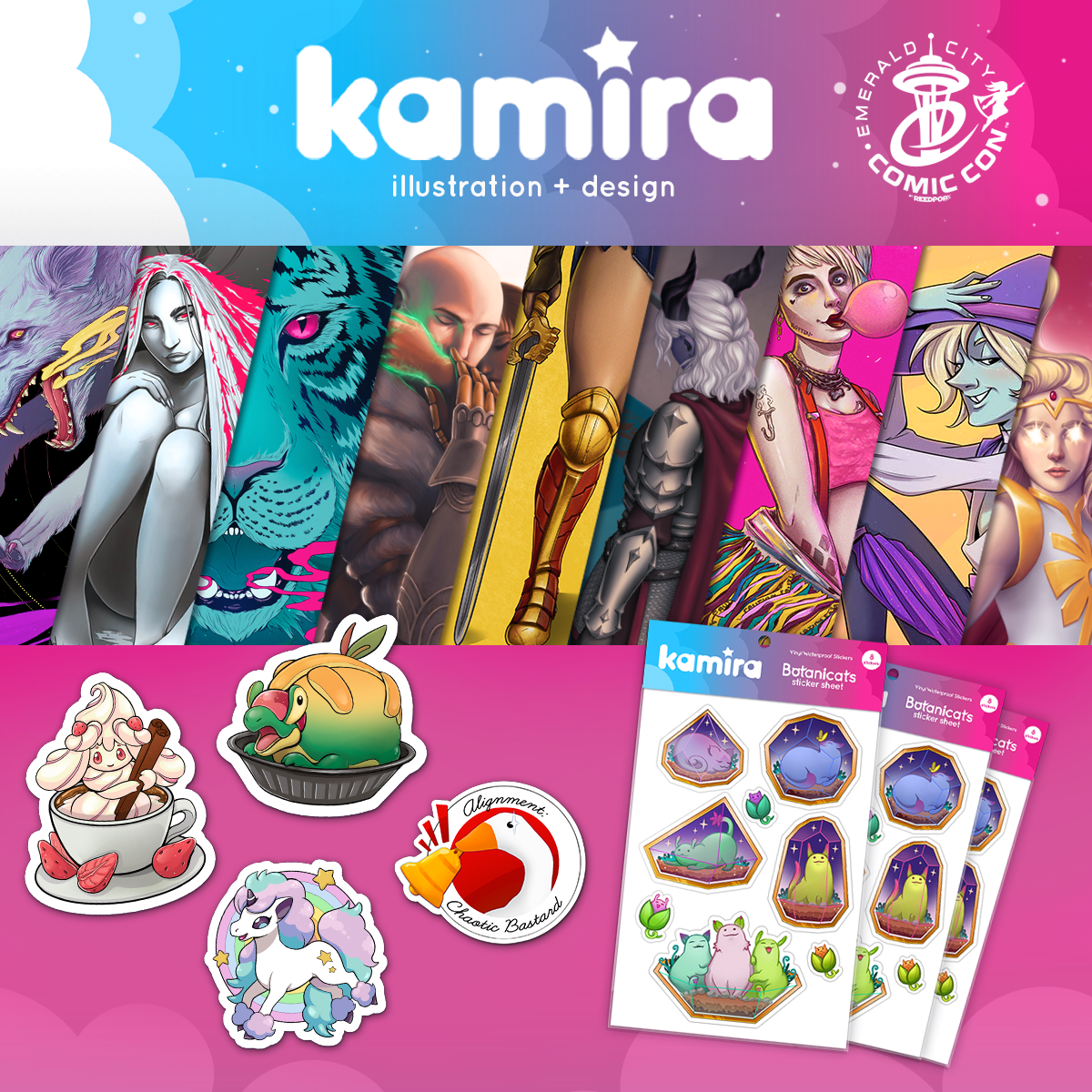 Kamira Studios is a small business that was founded by Amanda Feldman, Amira El-Moslimany and myself. It is a collaborative passion project, in which we create original art and fan art to sell at local conventions like Sakura Con and Emerald City Comic Con and network with other artists and fans like ourselves.