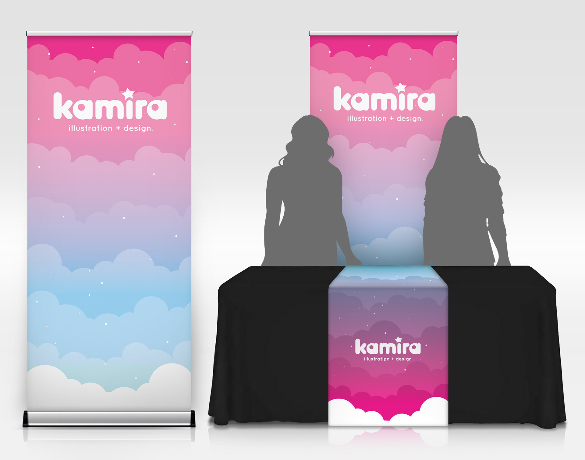 The brand is intended to have a friendly, fun, and cute vibe. We use a cloud and star motif with bright colors to help us stand out on the convention floor and make us more approachable to all ages, especially skewing towards a more feminine demographic, as it means more to us personally and we love to create for fans like ourselves.