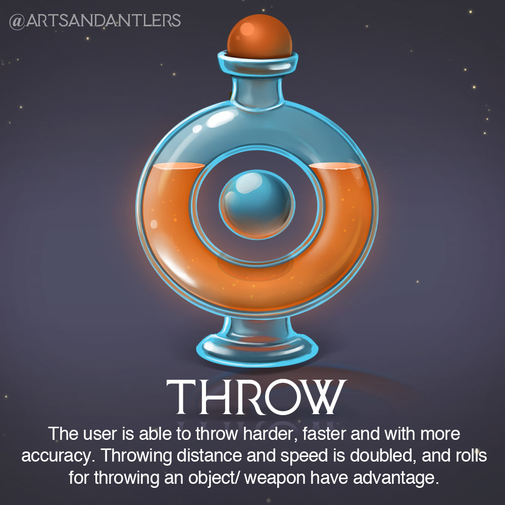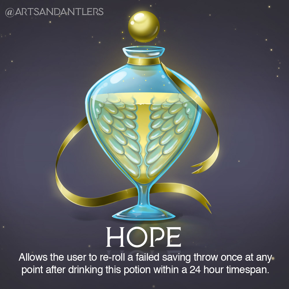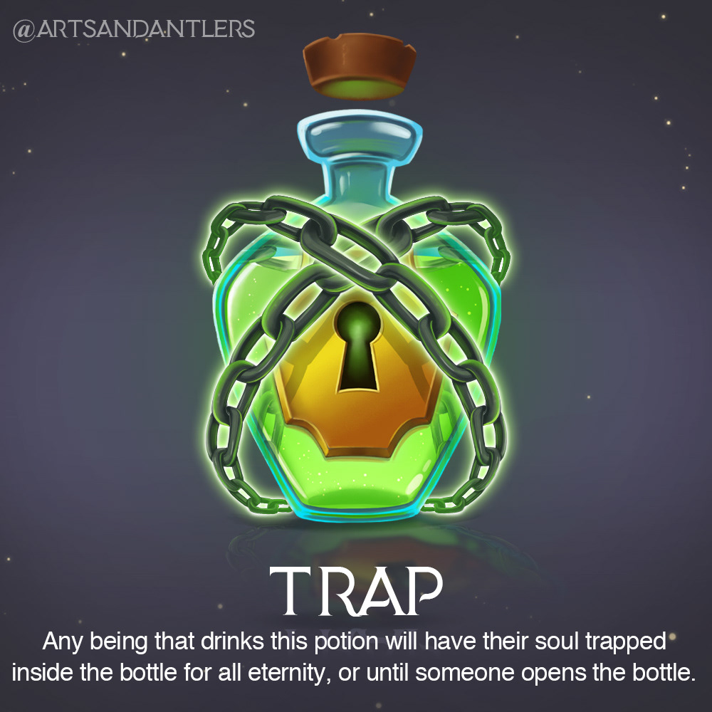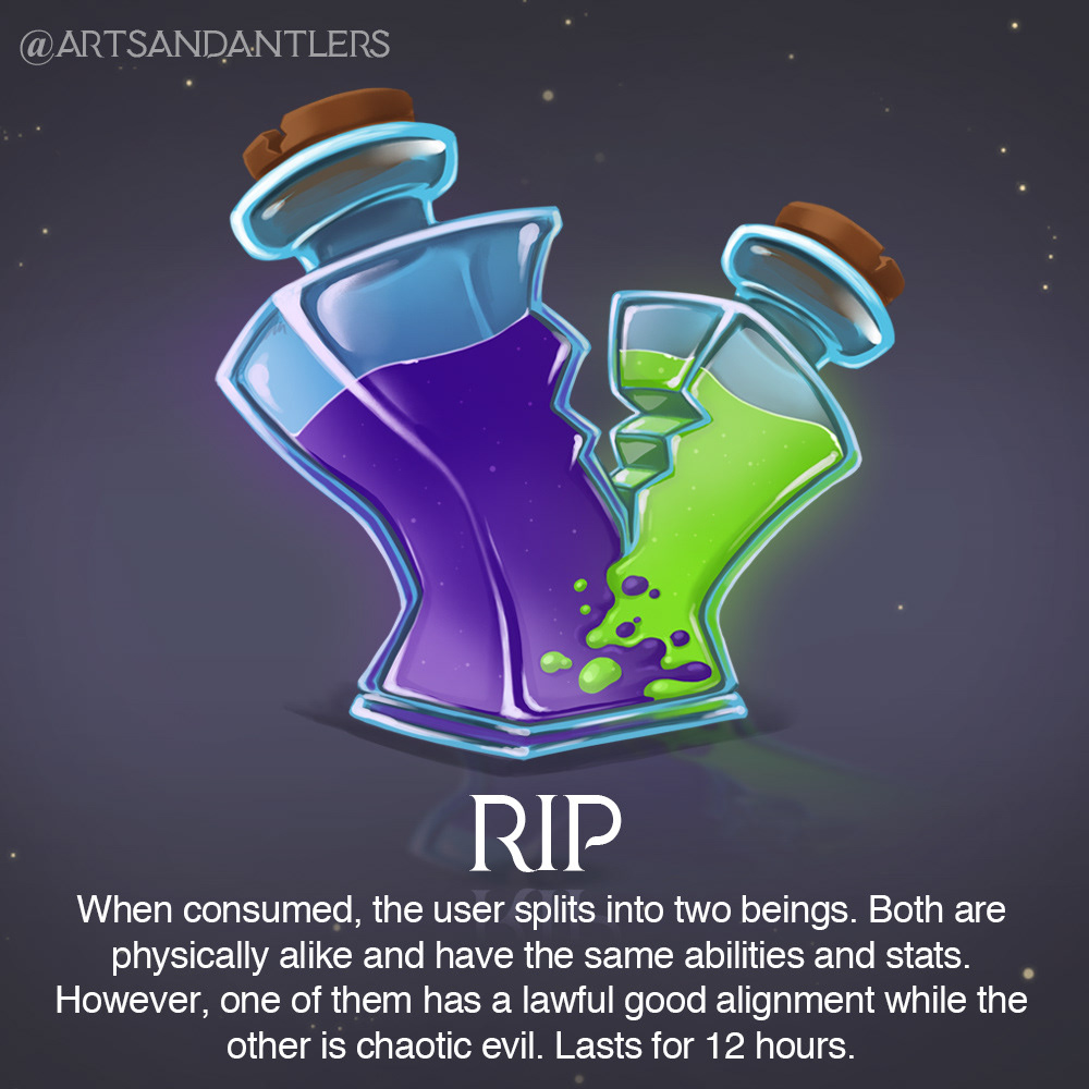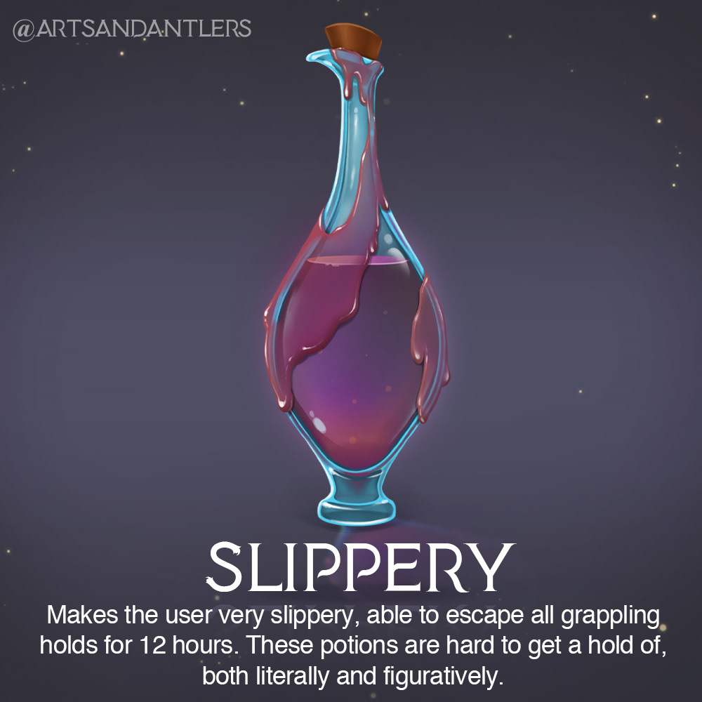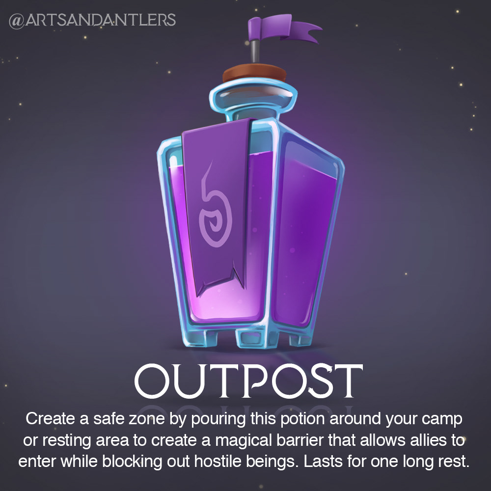 For each design, I also came up with ideas for what the potions did, based around the Dungeons & Dragons 5th Edition rules and mechanics. The finished product is meant to provide content to be used as "Homebrew" items in D&D games.