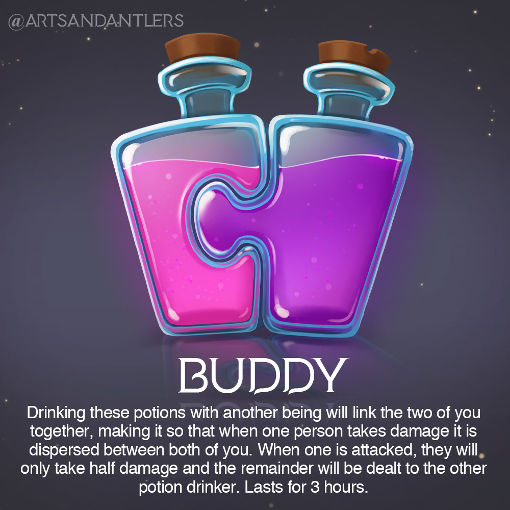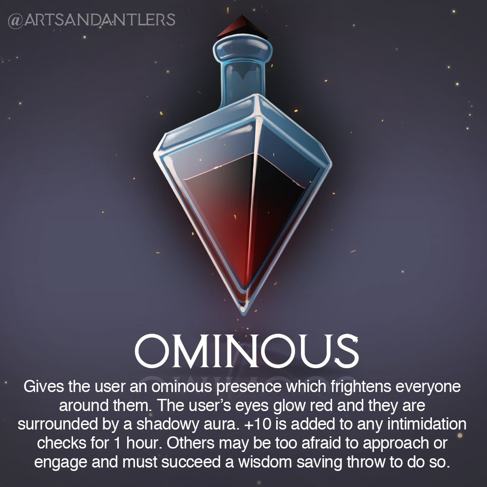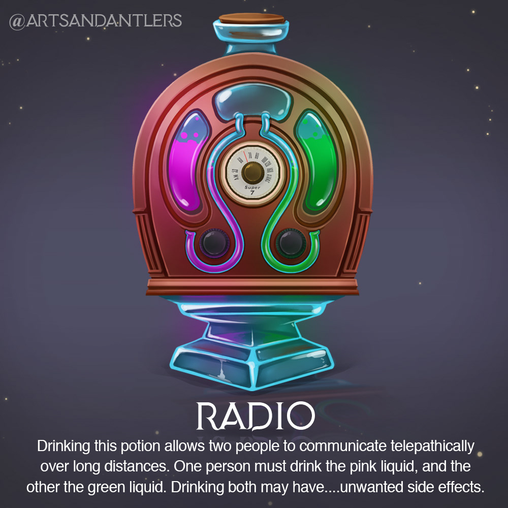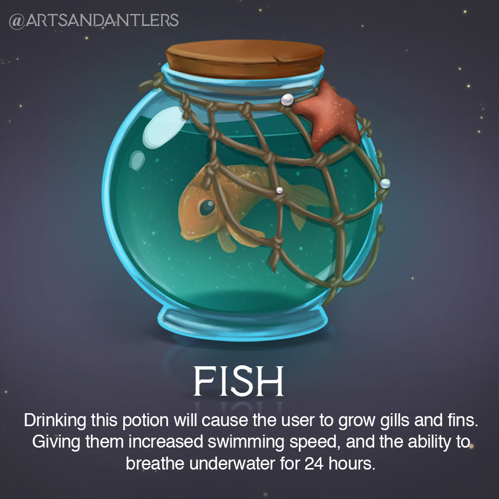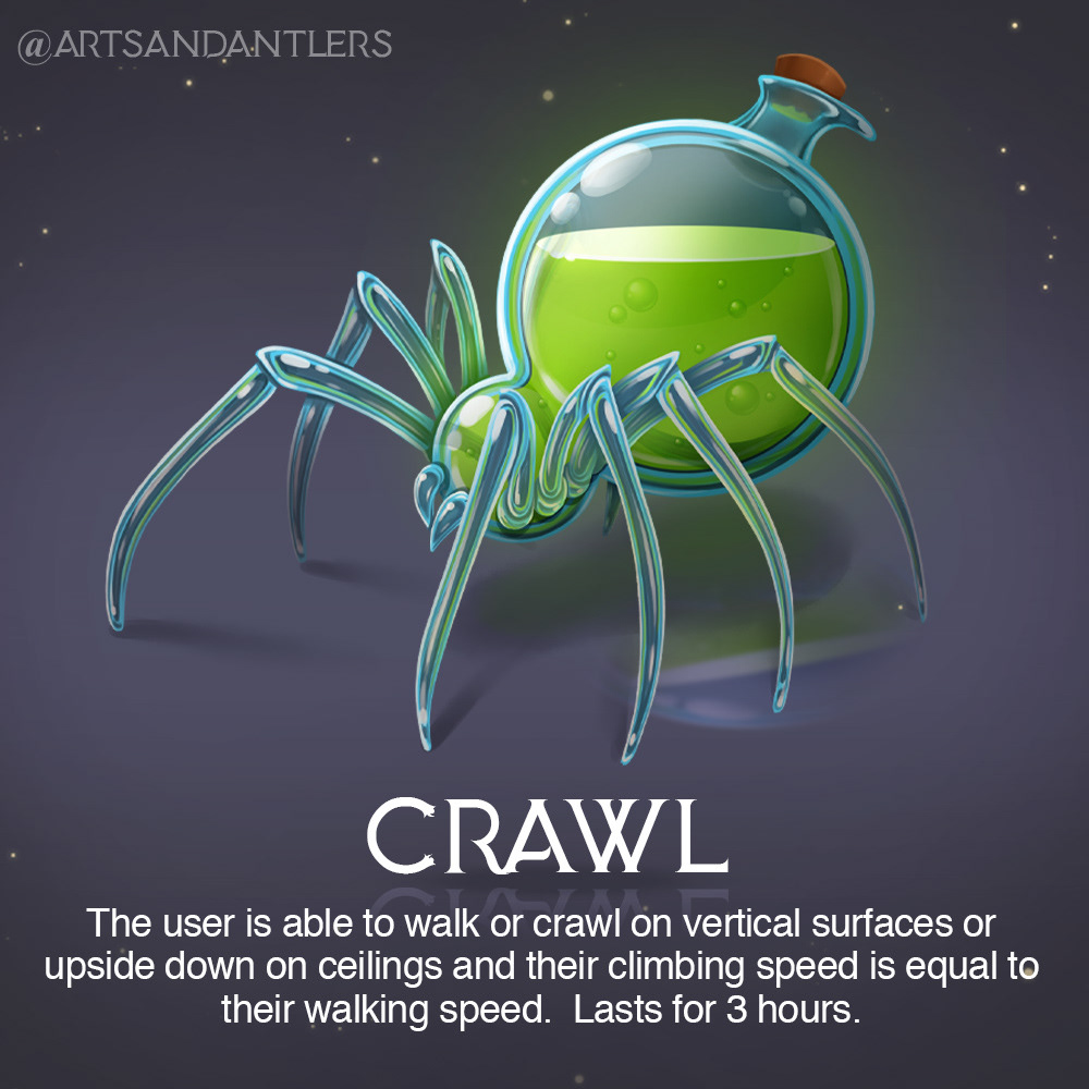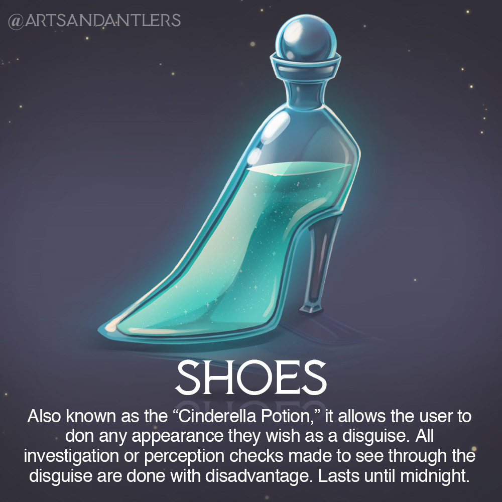 For each design, I also came up with ideas for what the potions did, based around the Dungeons & Dragons 5th Edition rules and mechanics. The finished product is meant to provide content to be used as "Homebrew" items in D&D games.